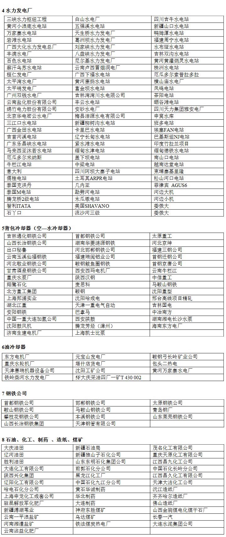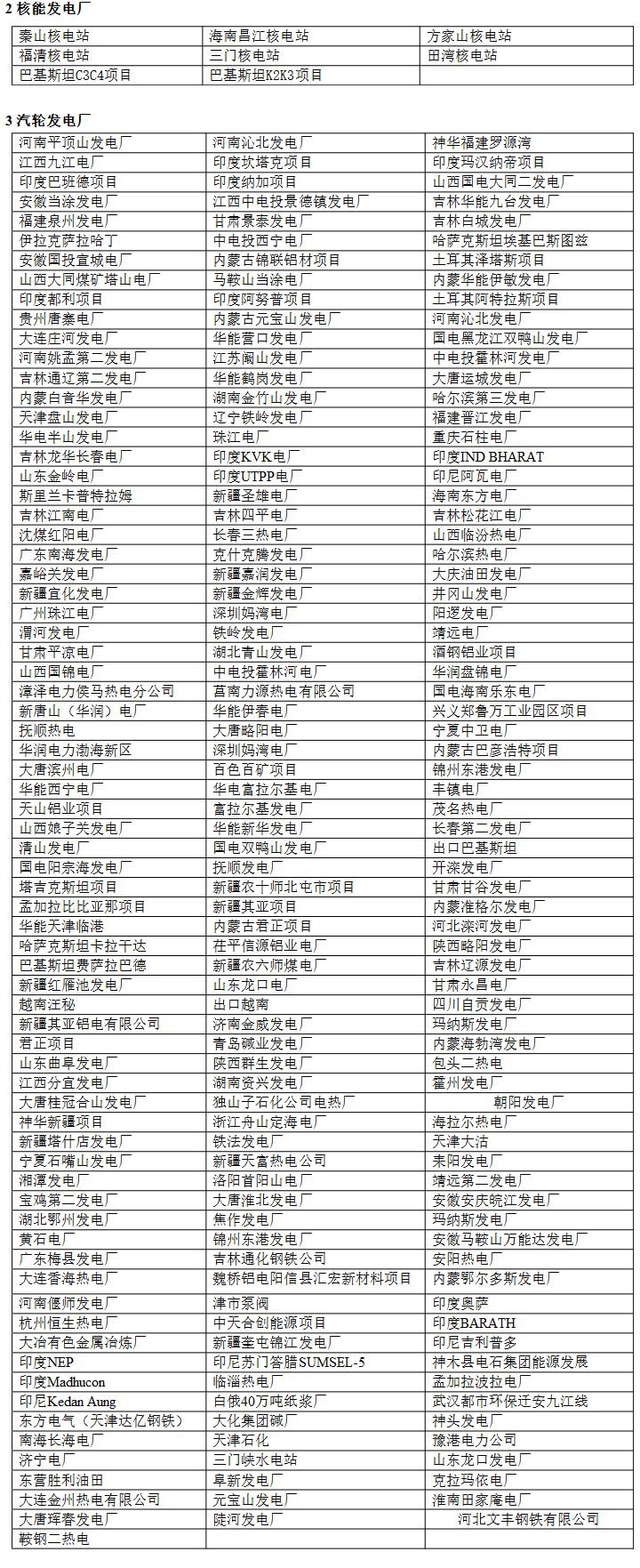 1、哈爾濱電機(jī)廠  2、 杭州發(fā)電設(shè)備廠    3、東方電機(jī)廠    4、北京重型電機(jī)廠    5、天津發(fā)電設(shè)備廠    6、東風(fēng)電機(jī)廠       7、沈陽(yáng)電機(jī)廠       8、西安西瑪電機(jī)廠    9、南京汽輪電機(jī)廠      10、 昆明電機(jī)廠      11、濟(jì)南生建電機(jī)廠      12、重慶水輪機(jī)廠